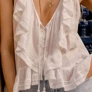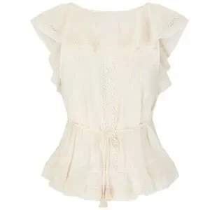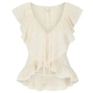 The Fleur Lace Frill Sleeveless Blouse in Vintage Cream is pure bohemian romance.