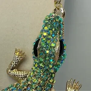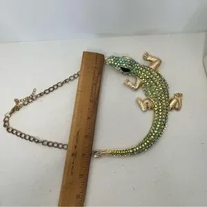 Huge Jeweled Green Lizard Pendant Statement Necklace