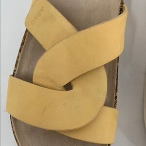 ABEO Lizzy slide sandal Impala tan yellow leather shoe comfort chunky knot new 7
