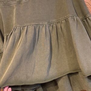 Chic scoop neck sweater. Features a loose fit with ruffled details. Ideal for everyday style. There are a couple of areas or discoloration and fading throughout but not sure if that is normap as I am the second owner.