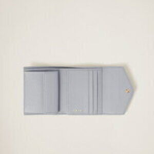 Miu Miu Vitello Dino Leather Folding Wallet Cornflower Blue