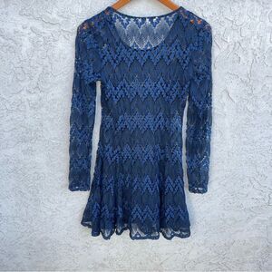 Lace Navy Blue Black Fit & Flare Mini Skater Dress SZ SM Long Sleeve Whimsy Goth