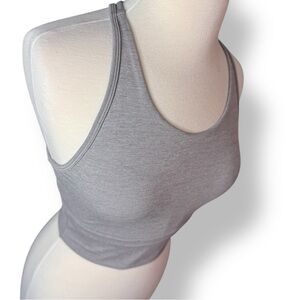 Experience comfort and style with this heather gray sports bra. Perfect for both workouts and everyday wear.