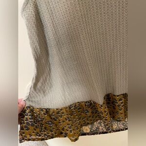 Women’s umgee knitted tank top size small. One snag in the knit, as seen in 2nd pic, but other than that no flaws. Dark cream/greenish color. Super cute!