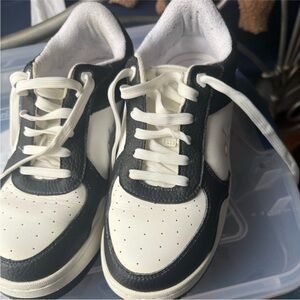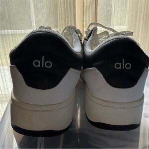 Stylish ALO Yoga sneakers. Black and white design. Comfortable fit.