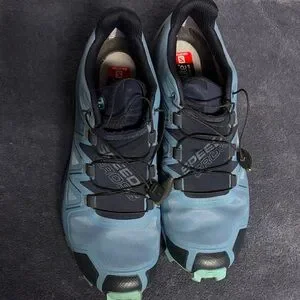 Great condition for Salomon Speed Cross 5. Light and dark blue. Only worn for two short hikes. Quick tie laces. Ortholite interior. Size 8.
