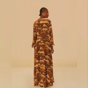 Farm Rio Malocas Long Sleeve Midi Dress Malocas Beige Medium NWT
