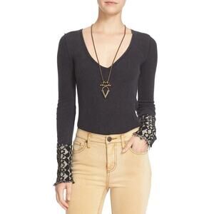 Free People We The Free Art School Cotton Blend Thermal Snap Button Cuff Blouse