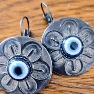 Elegant black and silver jewelry set featuring a striking evil eye design. Perfect for adding a touch of mystique to any outfit.