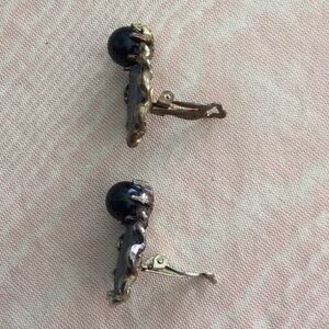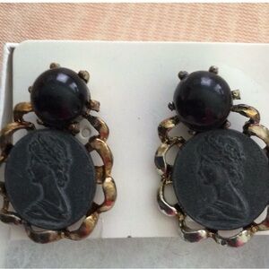 Vintage Clip on Earrings Black Beads And a Cameo face on a metal looking coin