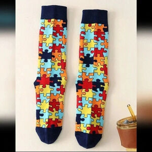 Crew cut socks red and blue men's fashion women's unisex puzzle piece women's je