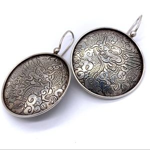 Silpada Sterling Etched Dragon Disc Earrings