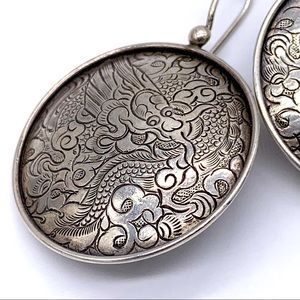 Silpada Sterling Etched Dragon Disc Earrings. Disc measures approximately 1-3/8”.