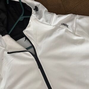 Stay stylish and comfortable with this sleek white hooded jacket. Perfect for any casual outing. New without tags. Took tags off and husband realized it was too big for him. All reasonable offers considered. Let’s make a deal!!