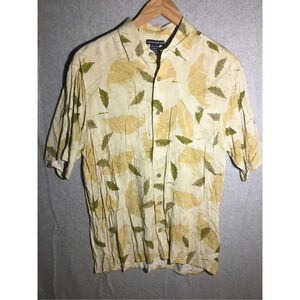 Mens Knightsbridge Button Up Shirt Leaves Rayon Casual Wooden Buttons Beachy