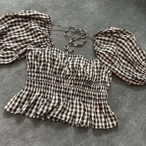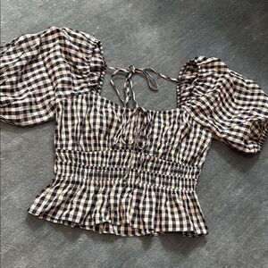 Checkered Puff Sleeve Top - LUCY PARIS - Size Medium - Brand New - Open Back