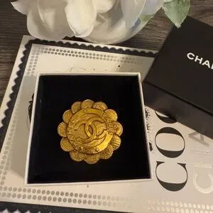 CHANEL Vintage Gold CC Paris Flower Brooch