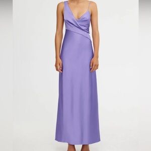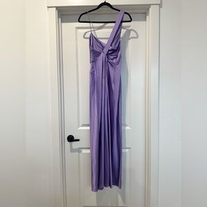 Step into elegance with this stunning lavender evening gown. Perfect for any special occasion, this dress features a sleek design and a flattering fit.