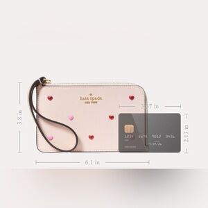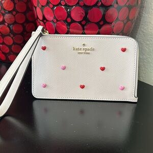 Kate Spade Wristlet, pink Leather Wallet, Heart Stud Clutch, Valentine Gift, Holiday Accessory, Everyday Essentials, Luxury Designer, Small Purse, Cute Gift for Her, Romantic Style, gift for her, gifts under $100, date night purse