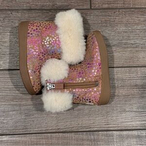 Ugg Jorie Spots Metallic Rainbow Shimmering Lined Sheepskin Boots Baby SZ 4/5 EUC