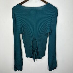 Modern Citizen Top M Teal Rib Knit Open Back Tie Long Sleeve Stretch