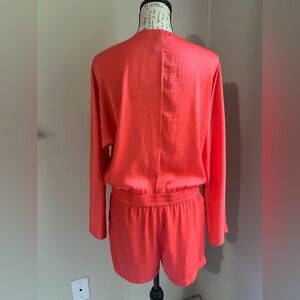 Elegant coral blouse by BCBGMaxAzria. Ideal for a sophisticated look.