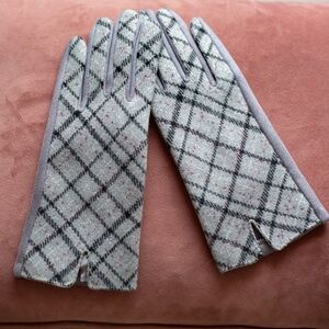 NWT Women's Plaid Gloves Text Touchscreen Gray Black Tartan Check Classic