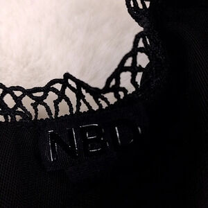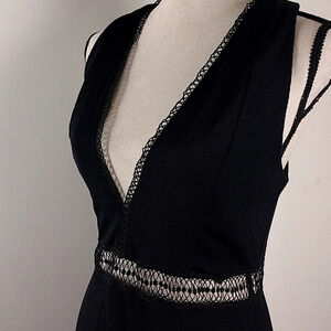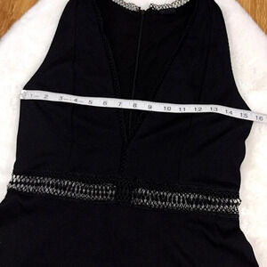 Revolve NBD Black Ribbed Sleeveless Lattice Lace Detail Mini Dress, NBD Unforgiven Dress, Size Medium. Zip Up Back, See Through Lattice Lace Netting Detail, Plunge Neckline. Excellent Gently Used Pre Owned Condition. Smoke Free Home, Fast Shipping!