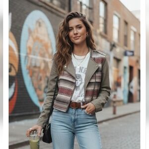 NWOT American Eagle Asymmetrical Southwestern/Aztec Patterned Moto Jacke…