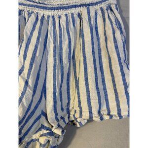 Ava & Viv Womens Plus Size 1X 18/20 Linen Blend Elastic Waist Shorts Blue White