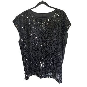 NWT Lane Bryant Top Black Mesh Sequin Disk Front Cap Sleeve Party Shirt Women's