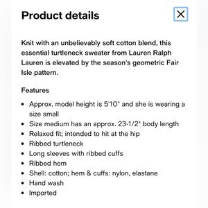 Ralph Lauren Fair Isle Cotton-Blend Turtleneck Sweater Size Small.