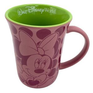Disney Parks Walt Disney World Minnie Mouse Pink Polka Dot Coffee Mug. 14oz. Pink on the outside, green on the inside. In excellent condition, like new no flaws.
