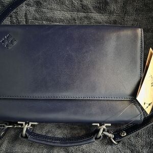BRAND NEW WITH TAGS LEATHER PATRICIA NASH HANDBAG. FLAWLESS. DUSTBAG INCLUDED. This elegant navy blue handbag features a beautiful floral embossed design, perfect for adding a touch of sophistication to any outfit. Crafted with attention to detail, it offers both style and functionality.