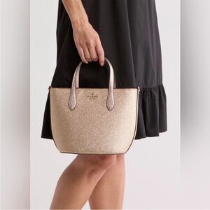 Shine everywhere you go with this gorgeous Kate Spade New York glitter bag. Featuring a chic gold glitter finish and versatile design, it can be worn as a handbag or crossbody for hands-free style. The perfect mix of glam and practical!