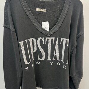 Everyone's favorite sweatshirt.This staple pullover is featured in a soft cotton fabrication and oversized fit with a deep V-neckline and a statement front graphic. Slouchy, oversized fit. Drop-shoulder sleeves with elasticated cuffs, ribbed trim, exposed seam detailing, rolled hem. Soft cotton blend.