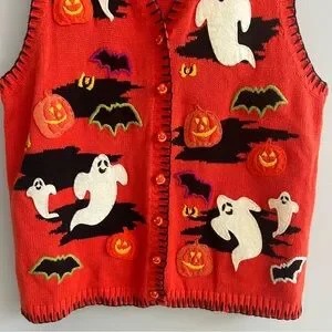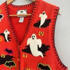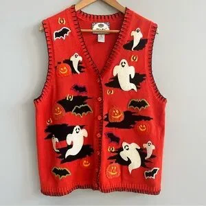 Tiara International Vintage Halloween Ghost Patchwork Sweater Vest Size Large