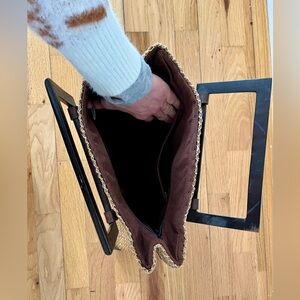 Perfect for any occasion, it combines elegance with practicality. Wood handles and zip top closure. Excellent Preowned condition