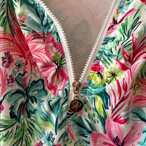 Very cute, with gorgeous colors. Zip top, left side small pocket. Excellent condition. 3/4 sleeves, very comfortable.