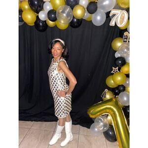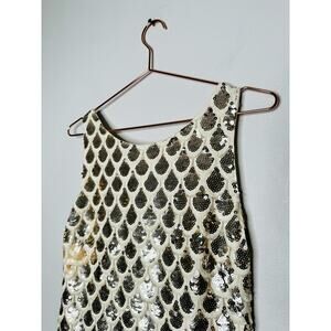 MILLY White Gold Silver Scallop Print Sequins Rhea Sleeveless Mini Dress Size 6