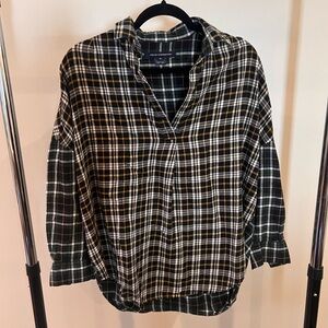 This Panita shirt from French Connection is crafted of cotton featuring a two-tone contrasting plaid pattern, point collar, dropped shoulders, and long sleeves.