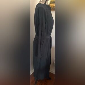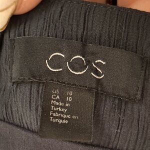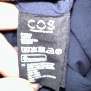 This sophisticated black sheath dress by COS features a chic tie front detail and a bateau neckline, perfect for cocktail or work occasions. The long sleeves and streamlined silhouette offer a polished look, making it a versatile addition to any wardrobe.