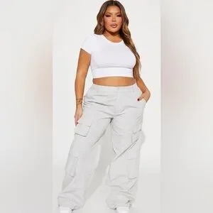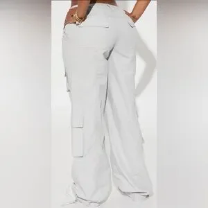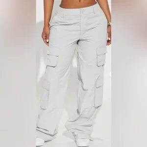 Trendy gray cargo pants with multiple pockets. Perfect for casual wear.