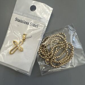Stainless Steel Cross Pendant Gold Plated 24 Inch Chain Religious Jesus Christ
