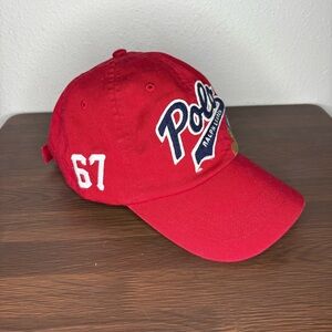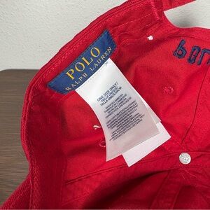 Polo Ralph Lauren Bear Script Logo Strap Back Hat Cap Red Sewn Cotton Adjustable