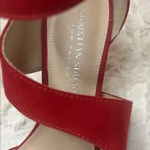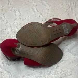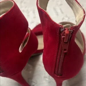 Elegant red heels with a chic strappy design. Perfect for elevating any outfit. 🎄