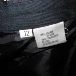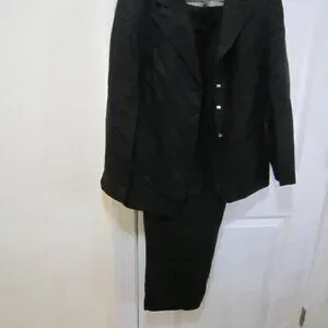 Calvin Klein Women's 2pc Black Pant Suit, sz 12. Linen/Rayon blend fully lined. silver buttons, dimensions are inseam 31", Waist 35", Jacket sleeves 24", shoulders width across back 17". Please ask any questions.