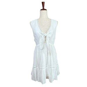 NEW Lulus Lively Beauty White Tie-Front Tiered Mini Dress. Small #1565