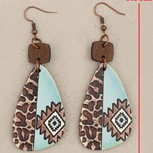 Elevate your style with these artisan earrings featuring a striking blue and brown pattern. Perfect for adding a unique touch to any outfit.