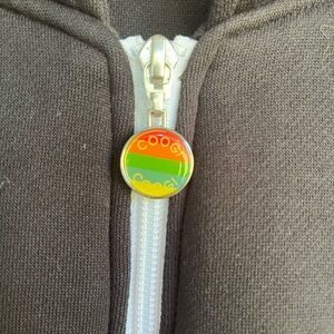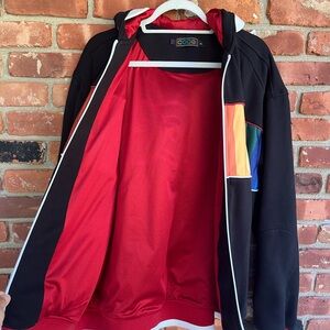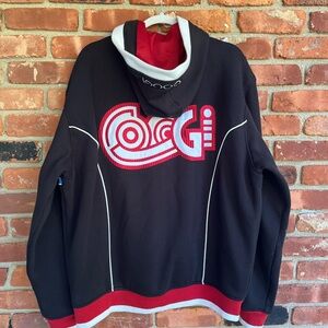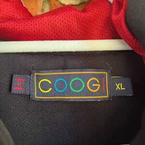 Black COOGI zip up hoodie with a vibrant multicolor design and embroidered patch on the front and a big, beautiful COOGI design on the back. Eye-catching and unique design.